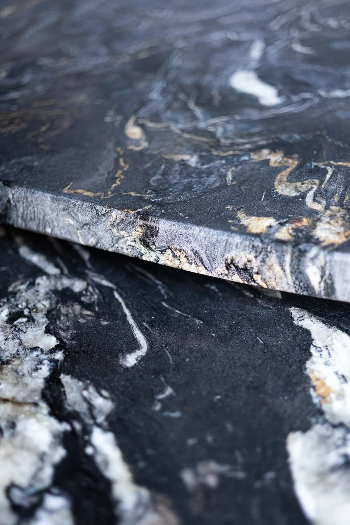 The studio has established a partnership with a local stone processing facility for the cutting, shaping, and polishing of all stone tops featured in the Xenolith collection. State-of-the-art CNC machines are employed to meticulously cut each tabletop to exact dimensions, followed by meticulous hand-finishing and rigorous inspection to ensure a flawless finish, free from blemishes or defects. This facility's capabilities extend to sourcing slabs from all corners of the globe and processing them at any desired scale.